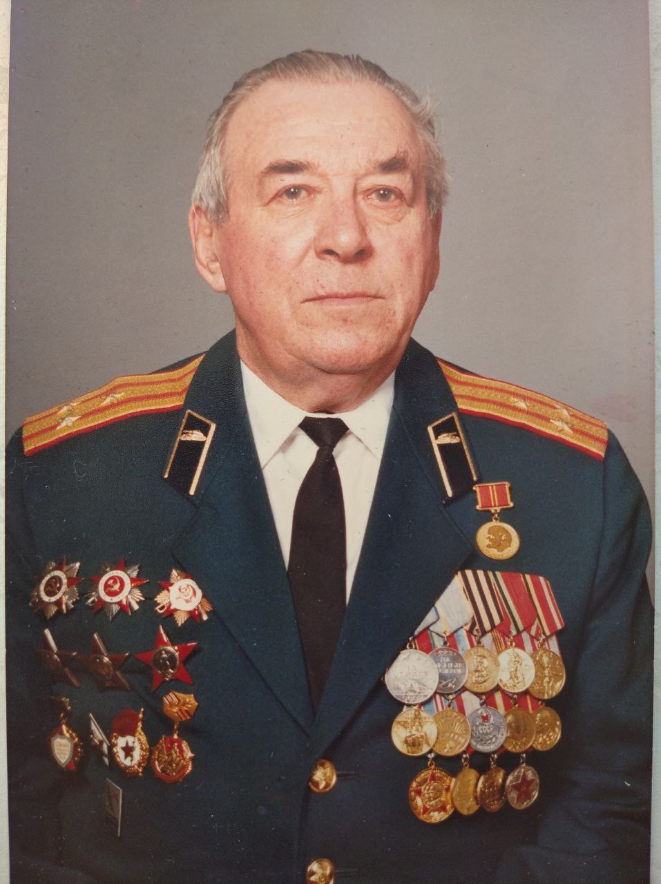 В 1943 г. участвовал в операции Юго-Западного фронта "Скачок", которая проходила как раз с целью освобождения Донбасса. Участвовал в 1943 г. в составе Центрального фронта в Курской битве, где получил свою первую правительственную награду — Орден Красной Звезды. В январе 1944 г. участвовал в Корсунь-Шевченковской операции, эта операция была направлена на уничтожение фашистов под Киевом, в районе Звенигородка — Шендеровка. В мае 1944 г. был участником операции Яссы-Кишинёв и был награждён медалью "За отвагу". В 1945 г. воевал в составе 1-го гвардейского танкового корпуса в боях за Гданьск, Росток, Висмар, Деммин, где корпусу было присвоено звание гвардейского, и дедушка был награждён Орденом Отечественной войны; в том же 1945 г. участвовал в Висло-Одерской операции, где получил свой второй Орден Отечественной войны и медаль "За освобождение Варшавы". К сожалению, история, за что он был награждён ещё двумя Орденами Красной Звезды, засекречена, знаю, что дедушка был в составе разведывательного батальона. Он вообще не любил рассказывать о войне. После войны он закончил Московскую Академию бронетанковых войск с Золотой медалью, продолжил служить и ушёл в отставку в звании полковника.