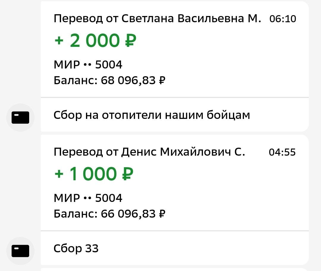 Спасибо огромное🔥🔥🔥 дорогие Жанна Геннадьевна А. и незнакомец, кто перечислил с ВТБ👍 имя не указано, к сожалению