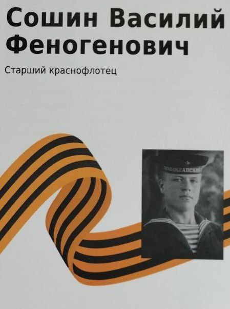 Сошин Василий Финогенович воевал в Заполярье в бригаде морской пехоты Северного флота, участвовал в штурме Кёнигсберга. Заслужил пять наград: орден Красной звезды и медали. Вернулся домой в 1947 году, работал водителем лесовоза, создал семью и вырастил девять детей.